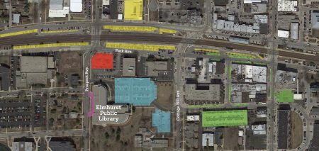 BLUE: this is the Library’s parking lot. Parking in this lot is for Library users only-All others will be ticketed. Additional spaces are available in the Elmhurst Art Museum lot when the Library lot is full. (these spaces have no time limit)