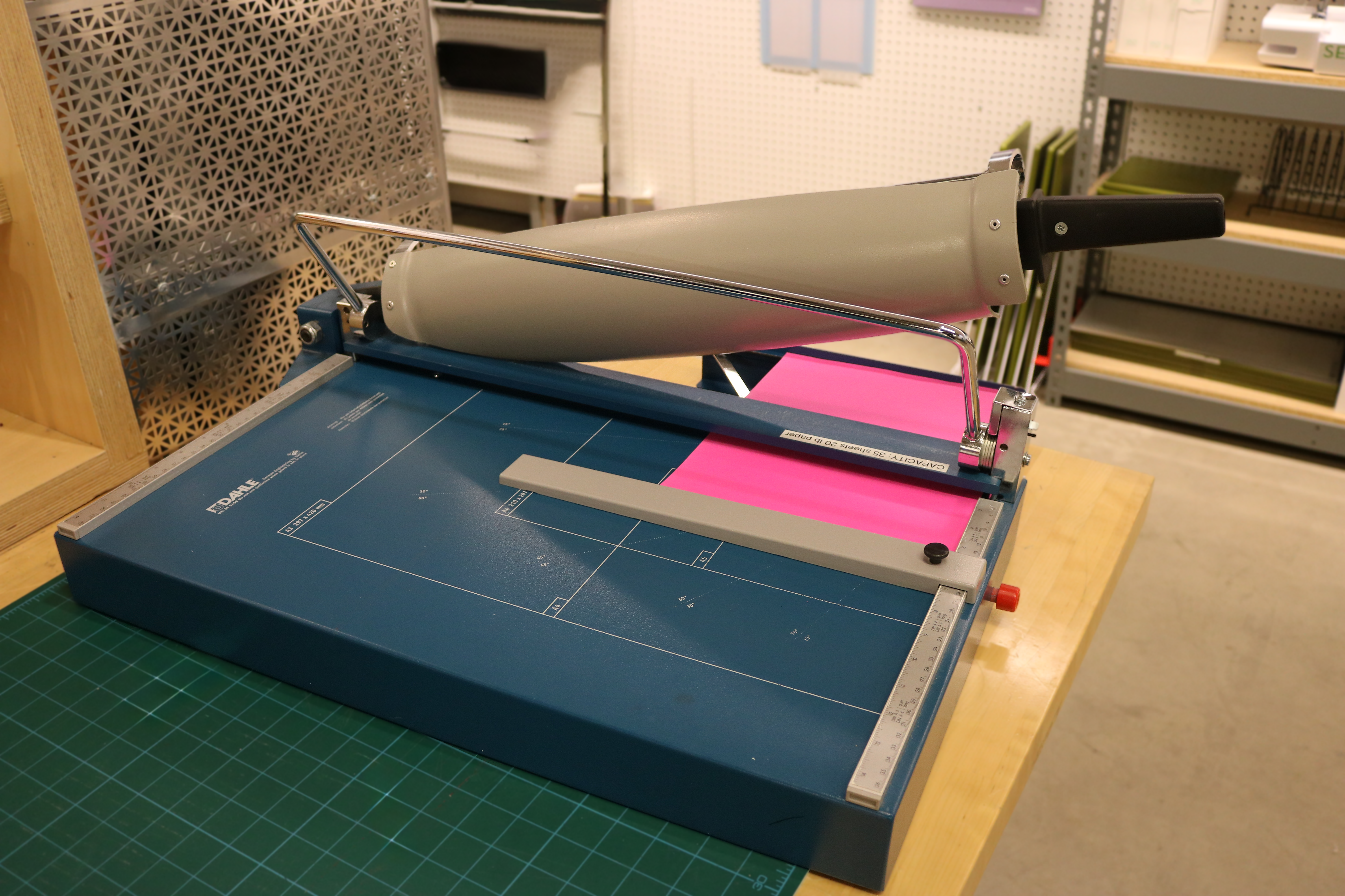 Cut up to 35 sheets of 20 lb copy paper at once. Maximum page size is 21.5″. Includes helpful measuring tools.
