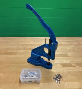 Attach grommets to fabric, leather, and similar materials to reinforce holes for hooks or carabiners. Sizes available are 1/4″, 3/8″, 1/2″