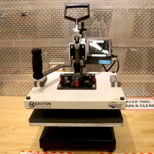 Simple heat press with a built-in timer. Great for smaller or delicate items like koozies or flat ceramic ornaments.