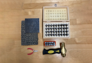 Create permanent hand stamped imprints in metal, leather, wood or similar materials. The set includes the alphabet in two sizes and assorted shapes.