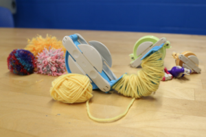 Make handmade pompoms varying in size from 1-3/8 to 3-3/8 inch in diameter. Handmade pompoms are great for topping off knit hats, creating garland, or adding dimension to other yarn or craft projects. Multiple sizes available. Please bring your own yarn.