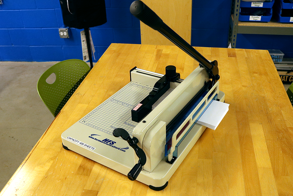 Cut up to 400 sheets of 20 lb copy paper at once. Maximum page size is 12″.